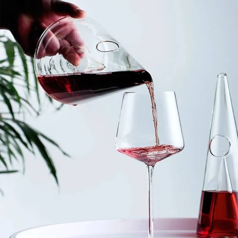 Son design voluptueux et élancé permet de contenir une grande quantité de vin rouge, tout en limitant l’apport d’oxygène grâce à la partie haute de la carafe qui est plus étroite.
